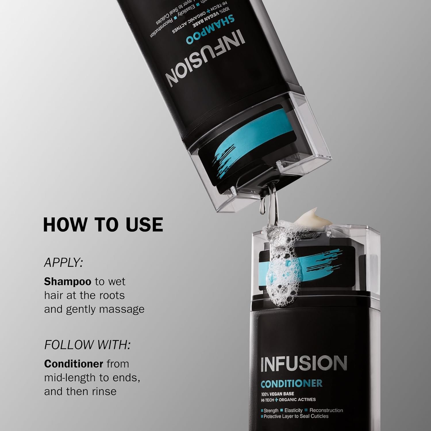 Base 100 % vegana. Para cabello seco, opaco y dañado. Hidrata y restaura profundamente el cabello, cubriéndolo con una capa protectora para un cabello más fuerte y brillante. Antiedad. Sin colorantes añadidos, pH fisiológico. Recomendado para uso diario. Protección del color.