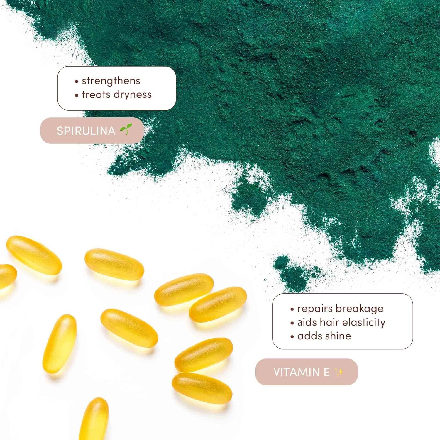Esta mascarilla capilar de acondicionamiento profundo fue hecha para cabello quebradizo y dañado. Una mascarilla capilar similar a un gel nocturno para cabello dañado infundida con el superalimento Espirulina y repleta de proteínas y vitaminas fortalecedoras.