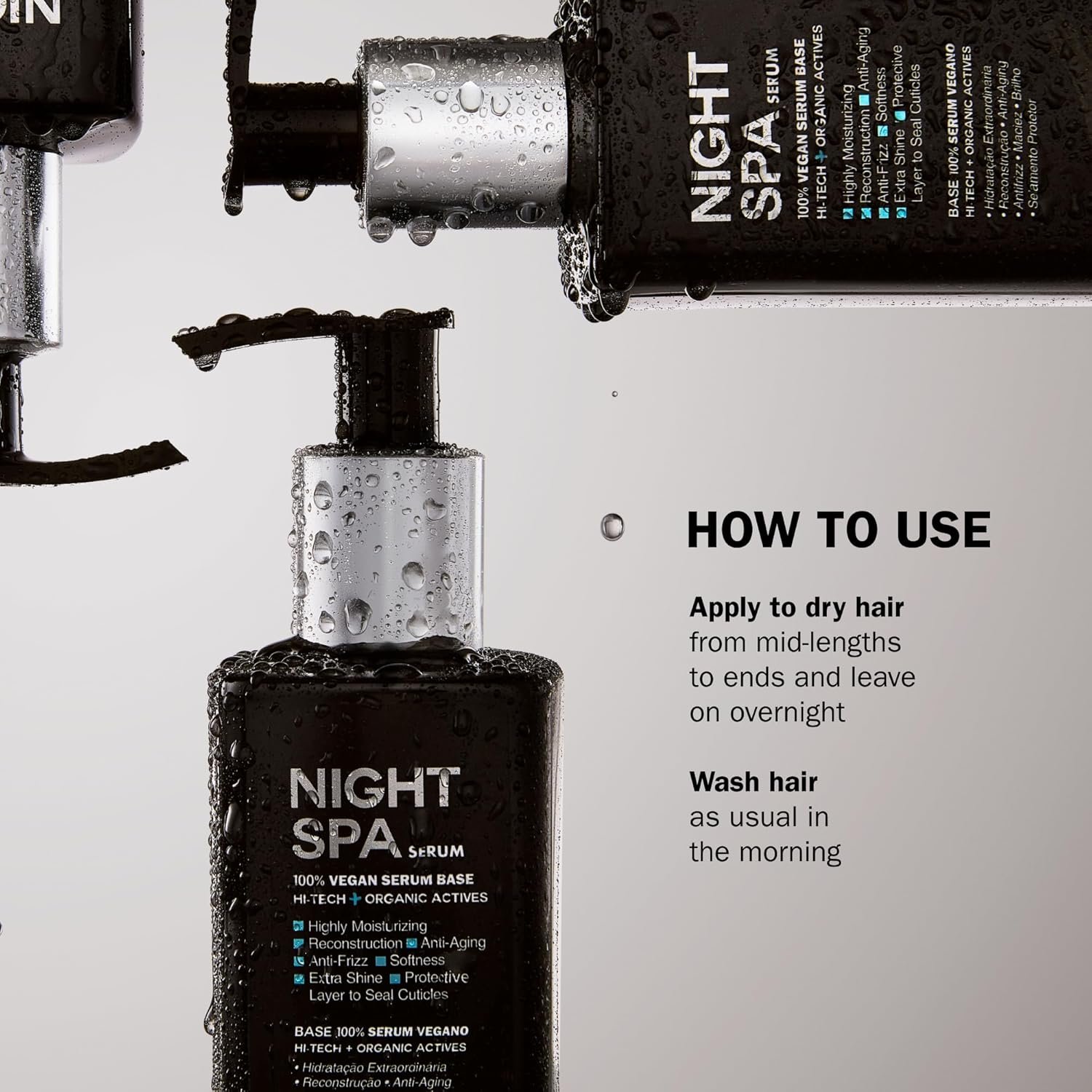 Night Spa Serum es un suero nocturno hidratante profundo, antiencrespamiento y anti-envejecimiento diseñado para proteger y restaurar la suavidad y el brillo al cabello seco o dañado. Este suero antiencrespamiento infunde tus cerraduras con una mezcla de aceites milagrosos para restaurar lípidos, aminoácidos y proteínas para aumentar la resistencia y elasticidad.