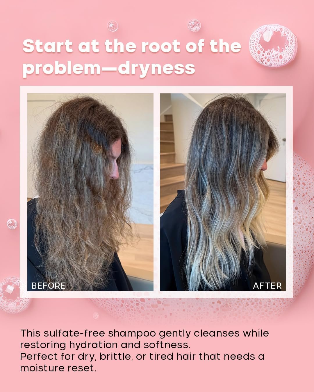 Un champú nutritivo de calidad profesional para cabello seco que limpia y nutre suavemente la fibra.