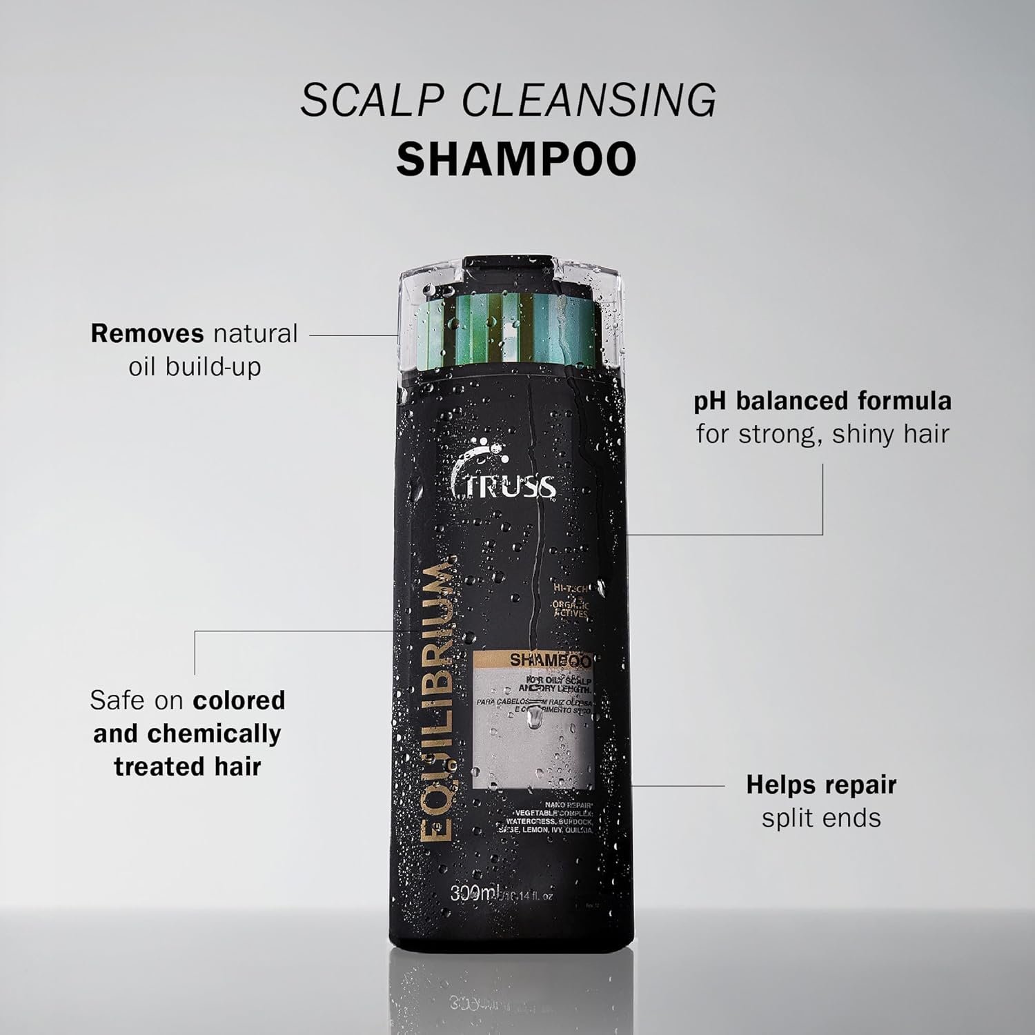 El champú TrussEquilibrium es un champú de limpieza suave, reduce el aceite para tipos de cabello excesivamente grasos. Este champú se puede utilizar en cualquier tipo de cabello, longitud o textura del cabello que necesite eliminar grasa. El exceso de grasa en el cabello puede hacer que la línea del cabello parezca grasosa y pese los estilos. Mantén tu cabello más lleno y vibrante con esta fórmula de champú sin peso.